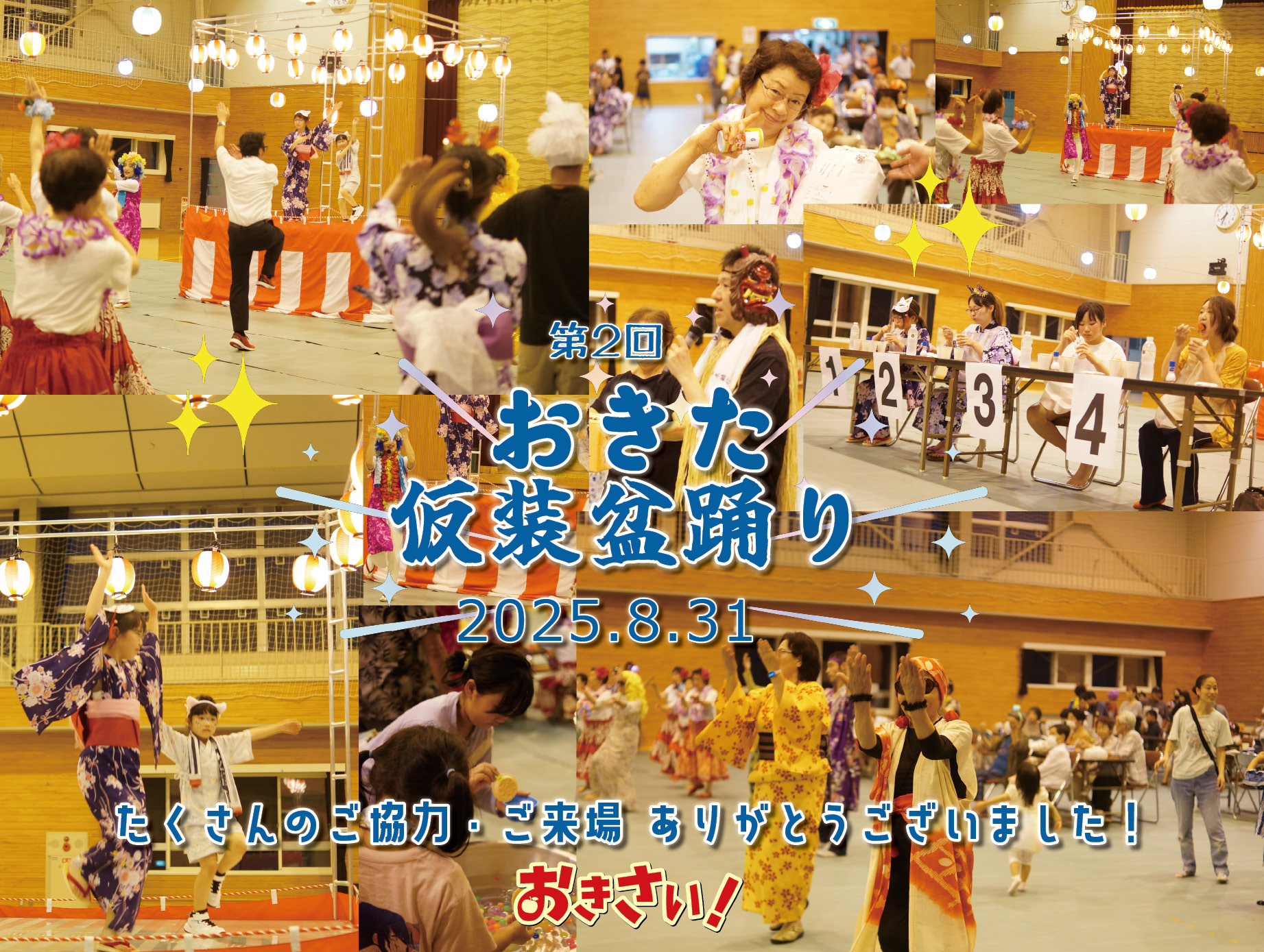 昨年に引き続き8月31日に第2回の開催となりました「おきた仮装盆踊り」は、大東バレーボール記念館を会場に、無事開催することができました。 当日は来場者数約200名、仮装してきてくださった方約60名の参加があり、仮装盆踊り […]