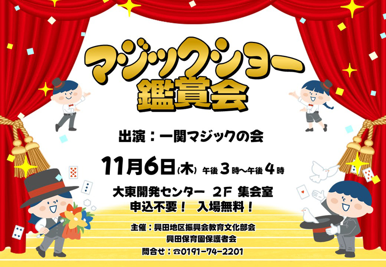 市内のイベントなどで活動されている「一関マジックの会」のみなさまをお招きして、マジックショーの鑑賞会を開催します!